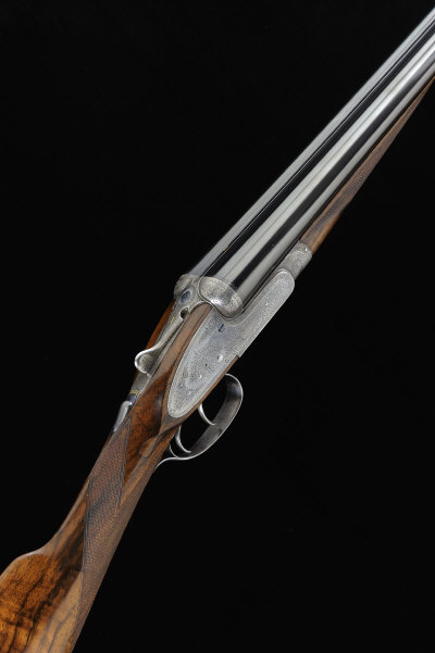 HENRY ATKIN A 12-BORE SIDELOCK EJECTOR GUN, NO. 1794 29-inch barrels with 2 1/2-inch chambers, about 1/4 and 1/2 choke borings, the frame, locks and gold numbered top lever with fine scroll engraving and retaining traces of original hardening colour, the maker's name signed within a banner, 14 3/4-inch well figured stock, 6lb. 3oz., nitro re-proof, barrel wall thickness below the recommended minimum, in its maker's brassbound leather case S2 |