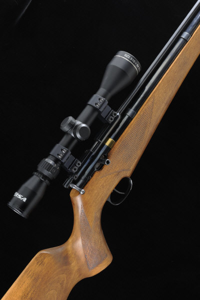 21 1/4-inch barrel, the receiver mounted with a BSA telescopic sight, the half length stock with pistol grip, cheekpiece and rubber recoil pad, 14 1/4-inch pull, 7lb. 4oz., retaining virtually all of its original finish overall