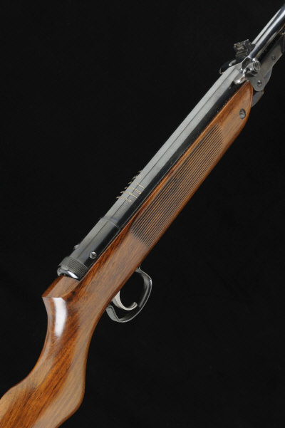 WEBLEY & SCOTT A .22 MARK 3 MODEL UNDERLEVER AIR RIFLE, NO. 16773 18 1/2-inch barrel with fixed fore sight and adjustable rear sight, loading tap, the cylinder with impressed maker's markings and knurled end cap, the half length ribbed stock with semi pistol grip, 13 1/2-inch pull, retaining much original finish overall, 6lb. 14oz. |