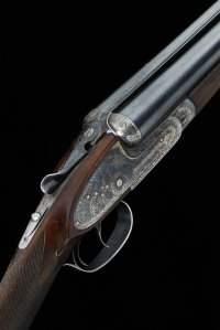 AYA A 12-BORE NO.2 MODEL SIDELOCK EJECTOR GUN, NO. 455550 28-inch chopper-.ump barrels with 2 3/4-inch chambers about 1/4 and 1/2 choke borings, the frame and hand detachable locks with scroll engraving and retaining some original hardening colour, gold-lined cocking indicators, articulated front trigger, rolled edge trigger guard, 14 3/4-inch figured stock, 6lb. 8oz., nitro proof |