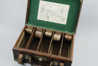 LINSLEY BROS. A BRASSBOUND LEATHER CARTRIDGE MAGAZINE for about 300 cases, with leather straps and dividers |