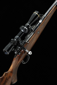 HOLLAND & HOLLAND A .240 APEX BOLT-ACTION SPORTING RIFLE, NO. 4157 23 1/2-inch barrel with ramp fore sight with folding hood, rear sight with folding leaf, the receiver mounted with a Leupold 2.5x8 telescopic sight on swing-off Apel mounts, bolt with side safety, the half length stock with pistol grip, cheekpiece and leather covered recoil pad, let-in comb raiser, recoil stud, grip cap with trap, sling swivels, 8lb. 4oz., nitro proof