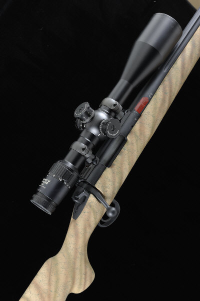 24-inch barrel fitted with a sound moderator, the receiver mounted with a Zeiss Diavari 6-24x56 telescopic sight, paralax adjustment, illumination, etc, bolt with side safety, the half length synthetic stock with pistol grip and recoil pad, 13 1/2-inch pull, 11lb. 6oz., nitro proof