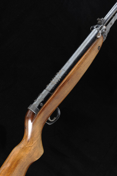WEBLEY A .22 MARK 3 UNDERLEVER AIR RIFLE, NO. 34083 18 1/2-inch barrel with adjustable rear sight, cylinder with loading tap, screw missing, the half length stock with pistol grip, 14-inch pull, cracked at the hand |