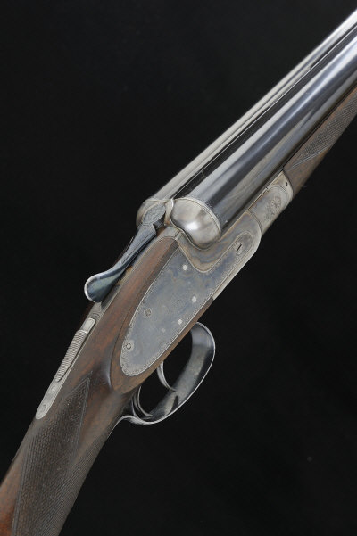 VICKERS LTD A 12-BORE SIDELOCK EJECTOR GUN, NO. 1088 30-inch Vickers steel barrels with 2 1/2-inch chambers, about improved cylinder and 3/4 choke borings, the frame, locks and top lever with border engraving and retaining much original hardening colour, 14 1/4-inch well figured stock with ribbed butt plate, 6lb. 13oz., nitro proof, in a lightweight leather motor case with James Purdey & Sons label S2 |