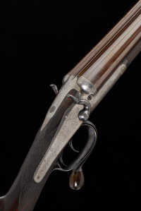 The makers confirm that the gun was built circa 1868 and incorporates Lang's Patent rotating and sliding bolt. The lock work is lever cocked and whilst the mechanism is internal, the gun displays dummy external hammers. |
