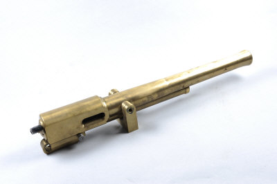 AN IMPRESSIVE PART-FINISHED BRASS SIGNAL CANNON 24-inch barrel, built around a Franchi 12-bore pump-action gun to allow for three shots in rapid succession, machined from solid, the cannon is mounted on a swivel mount with trunnions and requires finishing and construction of a carriage |