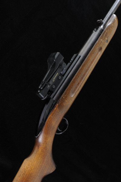 BSA A .22 "AIRSPORTER" MODEL UNDERLEVER AIR RIFLE, NO. GB13746 19-inch barrel with adjustable rear sight, the cylinder mounted with a Crossman sight, half length stock with pistol grip, 13 1/2-inch pull, 7lb. 14oz., stock cracked and repaired, trigger spring defective |