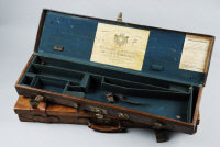 HOLLAND & HOLLAND A LEATHER RIFLE CASE for .303 rifle no. 17497, with compartment for 28-inch barrel; together with a further leather gun case |