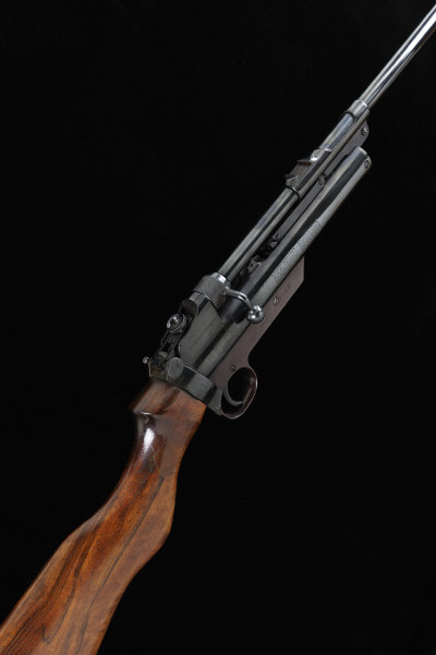 WEBLEY & SCOTT A .22 MARK II SERVICE AIR RIFLE, NO. S4724 25 1/2-inch barrel with matching serial number, the receiver with patent dates and folding aperture rear sight, the trigger block impressed with a previous owner's name "Dr Alec Ruffey", 14 1/2-inch figured stock with ribbed butt plate, repaired at the hand, refinished overall, rear sight missing |