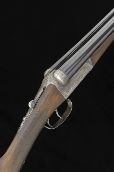 COGSWELL & HARRISON A 12-BORE BOXLOCK EJECTOR GUN, NO. 45640 30-inch barrels with 2 1/2-inch chambers, about 1/2 and full choke borings, crossbolt extension, the frame and top lever with scroll engraving and retaining some original hardening colour, 14-inch figured stock, 6lb. 8oz., nitro proof S2 |