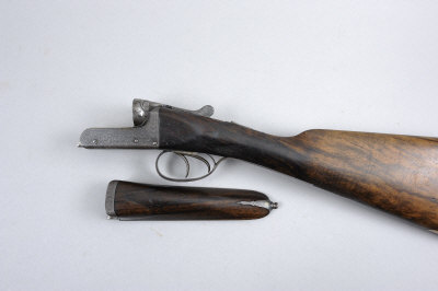 JAMES KIRK THE ACTION, STOCK AND FORE-END ONLY OF A 12-BORE BOXLOCK EJECTOR GUN the frame and gold numbered top lever with fine scroll engraving, 13 3/4-inch stock including rubber heel plate S2 |
