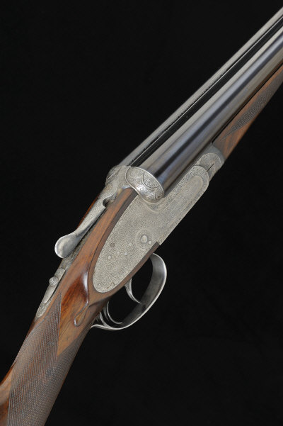 AYA A 12-BORE NO.2 MODEL SIDELOCK EJECTOR GUN, NO. 509224 27-inch chopper-lump barrels with 2 3/4-inch chambers, about 1/4 and 1/2 choke borings, the frame, hand detachable locks and top lever with scroll engraving, gold lined cocking indicators, articulated front trigger, rolled edge trigger guard, 14 3/4-inch figured stock including 1-inch extension, 6lb. 9oz., Spanish nitro proof, leather case S2 |