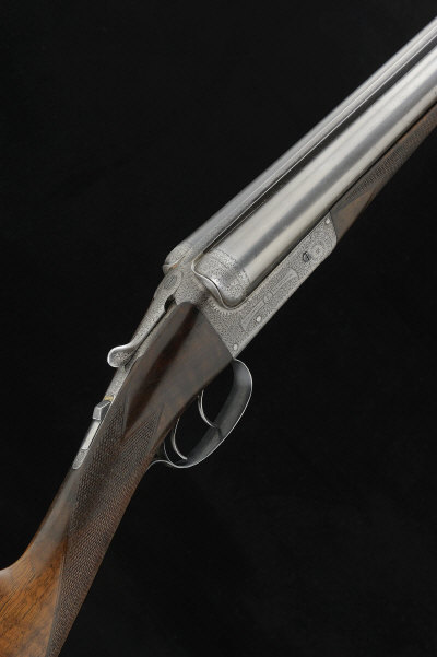 COGSWELL & HARRISON A 12-BORE "AVANT TOUT" MODEL BOXLOCK EJECTOR GUN, NO. 26530 30-inch replacement barrels by the maker (no. 42895), with 2 1/2-inch chambers, about improved cylinder and 1/2 choke borings, crossbolt extension, the frame and top lever with fine scroll engraving, the maker's name signed within a panel, 14 1/2-inch figured stock including 1/2-inch extension, 6lb. 5oz., nitro proof S2 Overall length: 46 1/2-inches |