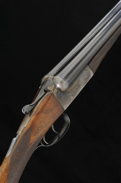 28-inch barrels with 2 1/2-inch chambers, about true cylinder and full choke borings, the frame and top lever with scroll engraving and retaining some original hardening colour, 14 1/2-inch figured stock, 6lb. 8oz., nitro proof, bores lightly marked