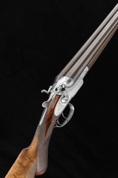 A 12-BORE TOP LEVER HAMMER GUN, NO. 4492 30-inch damascus barrels with 2 1/2-inch chambers, about 1/4 and 3/4 choke borings, crossbolt extension, the frame, rebounding bar locks, hammers and top lever with border and scroll engraving, fences with side clips, 14 1/4-inch figured stock with pistol grip, 6lb. 7oz., nitro re-proof |