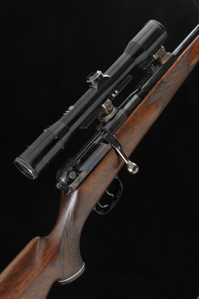 MAUSER A .270 MODEL 66 BOLT-ACTION SPORTING RIFLE, NO. G5732 24-inch barrel with ramp fore sight and folding rear sight, the receiver mounted with a Hensoldt Diavari 1.5-6x telescopic sight in quick detachable claw mounts, bolt with crossbolt safety, double set triggers, the half length figured stock with pistol grip, cheekpiece and rubber recoil pad, 13 1/4-inch pull, 8lb. 4oz., German nitro proof S1 |