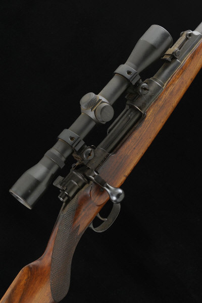 MAUSER A 7X57MM BOLT-ACTION SPORTING RIFLE, NO. 67851 22 1/2-inch barrel with ramp fore sight and graduated tangent rear sight to 1000, the receiver mounted with a Weaver K4 telescopic sight, bolt with flag safety, magazine with detachable floor plate, the half length stock with pistol grip, cheekpiece and rubber recoil pad, 14 1/4-inch pull, sling eyes, 8lb. 6oz., nitro proof S1 |
