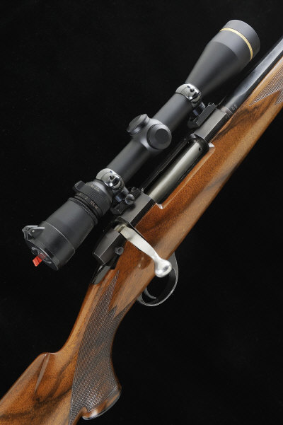 SHILEN A .25-06 BOLT-ACTION SPORTING RIFLE, NO. 2854 24 1/2-inch octagonal barrel, the receiver mounted with a Leupold 3.5-10x40 telescopic sight, bolt with side safety, half length stock with pistol grip, cheekpiece and rubber recoil pad, 13 3/4-inch figured stock, 8lb. 12oz., nitro proof S1 |