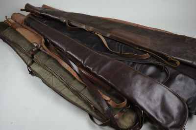 A GROUP OF FIVE LEATHER GUN SLIPS full length with fleece linings; together with five canvas gun slips (10) |