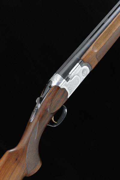 P. BERETTA A 12-BORE MODEL 686S SINGLE TRIGGER OVER AND UNDER EJECTOR GUN, NO. F14080B 28-inch monobloc barrels with 2 3/4-inch chambers, about 1/4 and 1/2 choke borings, machined ventilated rib, the frame and top lever with bouquet and scroll decoration, selective single trigger, 14 1/2-inch figured stock with pistol grip and rubber recoil pad, 7lb. 4oz., Italian nitro proof S2 |