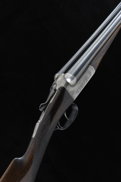 J. & W. TOLLEY A 12-BORE BOXLOCK EJECTOR GUN, NO. 87818 28-inch barrels with 2 1/2-inch chambers, about 1/4 and 1/2 choke borings, the frame and top lever with scroll engraving and retaining traces of original hardening colour, 14 3/4-inch figured stock including 3/4-inch extension, 6lb. 11oz., nitro proof |