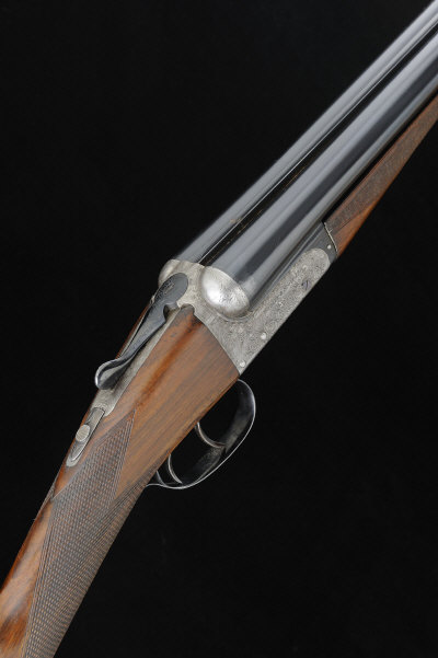 WEBLEY & SCOTT A 12-BORE MODEL 700 BOXLOCK EJECTOR GUN, NO. 128227 28-inch sleeved barrels with 2 1/2-inch chambers, about 1/4 and 1/2 choke borings, the frame and top lever with scroll engraving, 15 1/2-inch figured stock, 6lb. 6oz., nitro proof, rejointing recommended, in its canvas case with T. Stensby & Co. label S2 |