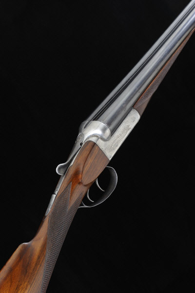 W. J. JEFFERY & CO. A 12-BORE BOXLOCK NON-EJECTOR GUN, NO. 27220 30-inch barrels with 2 1/2-inch chambers, about improved cylinder and 3/4 choke borings, crossbolt extension, the frame and top lever with border engraving, the maker's name signed within a banner, 14 3/4-inch figured stock, 6lb. 10oz., nitro re-proof S2 |