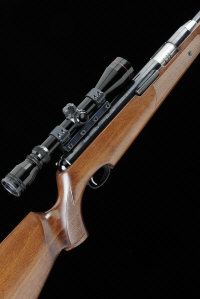 AIRARMS A .22 MODEL TX200 AIR RIFLE, NO. 17804 16-inch barrel, the receiver mounted with a Simmons telescopic sight, half length stock with pistol grip, cheekpiece and rubber recoil pad, 14 1/4-inch pull, 10lb. 6oz. |