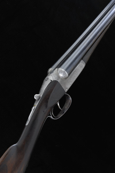 WESTLEY RICHARDS A 12-BORE BOXLOCK EJECTOR GUN, NO. 15111 28-inch sleeved barrels with 2 1/2-inch chambers, about 1/4 and 1/2 choke borings, doll's head extension, the frame and patent top lever with fine scroll engraving, the maker's name signed within a scrolling banner, 14 1/4-inch figured stock including 1/2-inch extension, 6lb. 6oz., nitro proof, leather case |