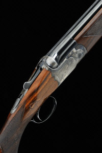 ALEX MARTIN A 20-BORE CONTINENTAL MODEL SINGLE TRIGGER OVER AND UNDER GUN, NO. 57 30-inch monobloc barrels with 2 3/4-inch chambers about 1/4 and 1/2 choke borings, file cut ventilated rib, the scroll back frame signed in gold by the maker and retaining virtually all of its original hardening colour, detachable trigger block, 14 3/4-inch figured stock with pistol grip, 6lb. 10oz., Italian nitro proof |