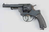 A FRENCH 11MM M1874 ORDINANCE REVOLVER, NO. 30906 4 1/4-inch part octagonal barrel with manufacturer's date, 1881, solid frame, cylinder with loading gate, chequered walnut grip, hammer nose broken |