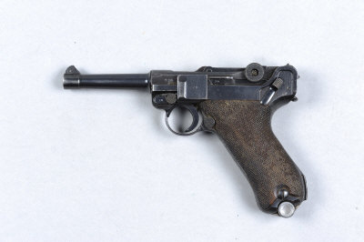S42 (MAUSER) A 9MM LUGER SELF-LOADING PISTOL, NO. 520 4-inch barrel, the receiver dated 1937, chequered walnut grip with matching magazine, nitro proof, in its leather holster S5 This lot will not be available for viewing in London. It can be viewed by appointment at our office in West Sussex.