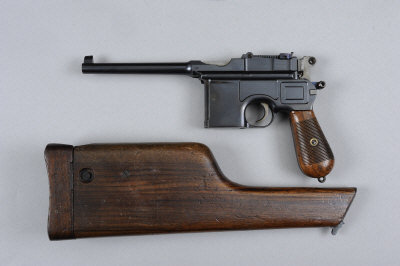 MAUSER A 7.63MM C96 BROOM-HANDLE SELF-LOADING PISTOL, NO. 105632 5 1/2-inch barrel with tangent sight graduated to 1000, milled receiver, retaining much original finish overall, ribbed walnut grips, German nitro proof, in its mismatched shoulder stock holster S5 This lot will not be available for viewing in London. It can be viewed by appointment at our office in West Sussex. |