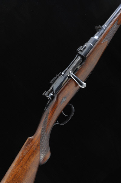 MANNLICHER SCHOENAUER A 6.5MM BOLT-ACTION STUTZEN SPORTING RIFLE, NO. 23863 17 1/2-inch barrel with ramp fore sight, rear sight with folding leaf, the receiver with bases for a telescopic sight, bolt with side safety, rotary magazine, the full length stock with pistol grip, cheekpiece and maker's steel butt plate with trap, 14-inch pull, 6lb. 12oz., Austrian nitro proof S1 |