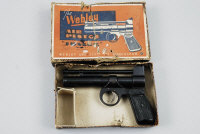 WEBLEY A .177 "JUNIOR" MODEL AIR PISTOL batch no. 1086, retaining most of its original finish overall, contained in its maker's box; together with another .177 "Junior" air pistol, no. J1821, with pressed tin grips |