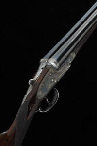 JOSEPH CURRY A 12-BORE SIDELOCK EJECTOR GUN, NO. 4023 25-inch shortened barrels with 2 1/2-inch chambers about true cylinder borings, the frame, back action bar locks and top lever with border and scroll engraving and retaining much original finish, 14 1/2-inch figured stock, chipped at the toe, 6lb. 4oz., nitro proof, canvas case with Alexander Henry & Co. label |