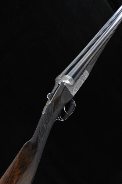 JAMES KIRK A 12-BORE BOXLOCK EJECTOR GUN, NO. 92144 28-inch barrels with 2 1/2-inch chambers, about 1/4 choke borings, top extension, the frame and top lever with fine scroll engraving and retaining traces of original hardening colour, 14 3/4-inch figured stock including 1/2-inch ebonite extension, 6lb. 8oz., nitro proof |