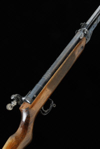 18 1/2-inch barrel, the receiver mounted with a Parker Hale aperture rear sight, the half length stock with ribbed fore-end and pistol grip, 13 1/2-inch pull, 7lb. 2oz., fore sight missing, receiver drilled for scope mounts