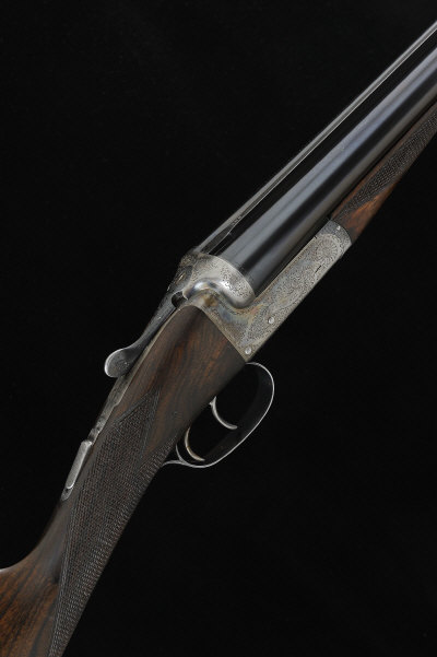 CHURCHILL GUNMAKERS LTD. A 12-BORE "REGAL" MODEL BOXLOCK EJECTOR GUN, NO. 8070 25-inch barrels with 2 3/4-inch chambers, about improved cylinder and 1/4 choke borings, file-cut Churchill rib, the frame and top lever with scroll engraving, retaining traces of original hardening colour, 15-inch figured stock, 6lb. 2oz., nitro proof, re-jointing recommended, in its maker's lightweight canvas "VC" case S2 |