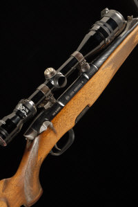 STEYR MANNLICHER A .270 LEFT HANDED BOLT ACTION SPORTING RIFLE, NO. 196838 23 1/2-inch barrel with ramp foresight and fixed rearsight, the receiver mounted with a Tasco telescopic sight, detachable box magazine, the half-length stock with pistol grip, cheek piece and rubber recoil pad, 14-inch pull, 7lb. 12oz., nitro proof |
