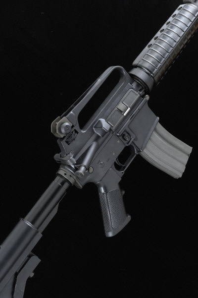BREMMER ARMS COMPANY A .22 MODEL "SAR 15" SELF-LOADING RIFLE, NO. LB000288 16-inch barrel with raised fore sight and flash eliminator, the receiver with dust cover and carrying handle, detachable box magazine, telescopic stock, 13 1/2-inch pull, 7lb. 1oz., nitro proof S1 |