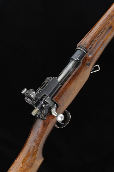 A .303 P14 BOLT-ACTION SERVICE RIFLE, NO. W214702 26-inch barrel, bolt with side safety, the receiver mounted with an A. J. Parker aperture rear sight, full length stock with hand guard and steel butt plate, 13 1/2-inch pull, 9lb. 9oz., nitro proof S1 |