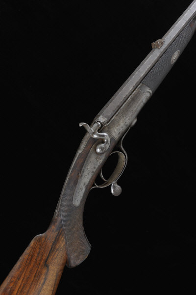 28-inch octagonal barrel with machined top surface, folding leaf sights to 300, Henry rifling, the plain frame, hammer, non-rebounding backlock and rotary underlever retaining traces of original hardening colour, 13 1/2-inch well figured stock with pistol grip, 5lb. 8oz., black powder proof