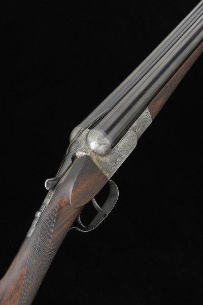 COGSWELL & HARRISON A 12-BORE BOXLOCK EJECTOR GUN, NO. 45917 28-inch Arkus steel barrels with 2 1/2-inch chambers, about improved cylinder and 3/8 choke borings, crossbolt extension, sunken game rib, the frame and top lever with scroll engraving and retaining traces of original hardening colour, 14 1/2-inch highly figured stock slightly cast-on for the left shoulder, 6lb. 9oz., nitro proof, right bore marked S2 |