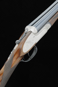 ARRIETA A 12-BORE GUNMARK VISCOUNT MODEL V SIDELOCK EJECTOR GUN, NO. 38150 28-inch chopper-lump barrels with 2 3/4-inch chambers, about 1/4 and 1/2 choke borings, the frame and locks with bouquet and scroll decoration, 14 3/4-inch stock, 6lb. 5oz., Spanish nitro proof
