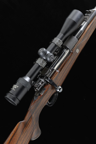 HOLLAND & HOLLAND A 7MM REMINGTON MAGNUM TAKE-DOWN BOLT-ACTION SPORTING RIFLE, NO. 3576 25-inch barrel with ramp fore sight and folding hood, rear sight with folding leaves to 350, the receiver with matted top surface and mounted with a Zeiss Diavari-V 3-9x42 telescopic sight in quick detachable Holland & Holland mounts, the bolt with flag and side safety, magazine with hinged base plate, half length well figured stock with pistol grip, cheekpiece and rubber recoil pad, 13 3/4-inch pull, sling swivels, 9lb. 3oz., nitro proof, in its maker's lightweight leather case S1 |