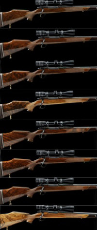 The collection of 8 rifles, numbered H100001 through H100008, were built in 1976 and were offered by Weatherby as a set for sale by Private Treaty. Representing a milestone in Weatherby rifle production, this unique set of rifles includes examples of all 8 Weatherby magnum calibres that were offered on the Weatherby Mark V action. The rifles remain new and unused, retaining all of their original finish, with just minor handling marks, maker's tags and instruction booklets. The rifles were purchased by Private Treaty direct from Weatherby in 1977, the final sum for these rifles paid was $33,265. The collection is sold with the copy of the original maker's invoice and letters about the rifles.