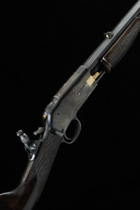 COLT A .22 LONG "LIGHTNING" MODEL PUMP-ACTION SPORTING RIFLE, NO. 34563 24-inch octagonal barrel with folding leaf sight and engraved with the retailer's name E. J. Churchill, tubular magazine, receiver impressed with rampant Colt trademark, tang fitted with folding aperture sight, 14 1/2-inch stock, 6lb., nitro proof |