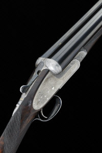 29-inch chopper-lump barrels with 2 1/2-inch chambers with recessed and 1/4 choke borings, the frame, locks and gold numbered top lever with fine bouquet and scroll engraving and retaining some original hardening colour, the maker's name signed within a scrolling banner, Boss patent single trigger, gold lined cocking indicators, rolled edge trigger guard, 16 1/4-inch highly figured stock including 2 1/4-inch extension, 6lb. 110z., nitro proof